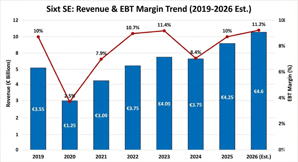 As of early 2026, the data is clear: Sixt has successfully navigated the high-interest-rate environment and used-car price volatility. With record revenues ( 4.25B) and a return to its target 10% profit margins, the current share price represents a significant discount to its intrinsic value. We believe Sixt offers a realistic, risk-adjusted path to double its market value within the next 3 to 4 years.