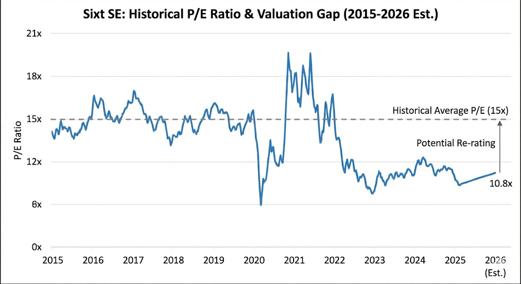 Sixt currently trades at roughly 11x earnings. Historically, when the market recognizes Sixt as a high-quality compounder, it trades closer to 15x.